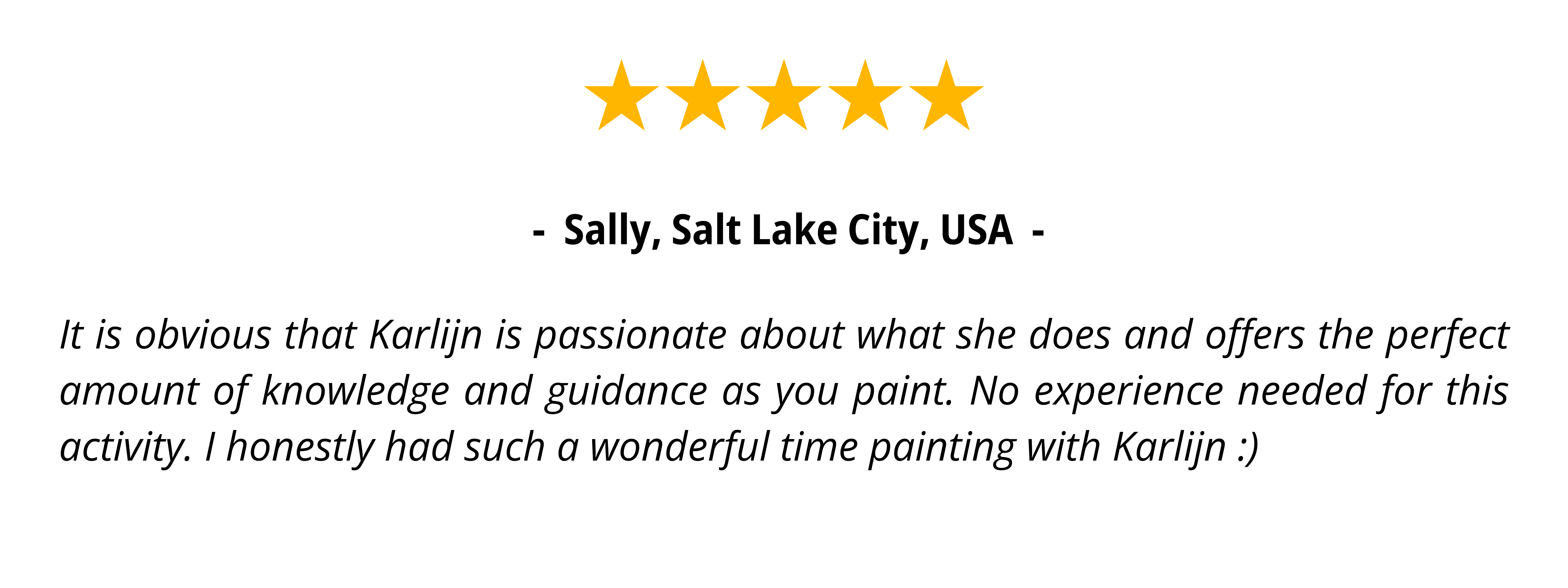 “Whether you’re a beginner or an experienced artist, Karlijn’s workshops are a fantastic opportunity to unleash your creativity and discover your inner artist. I highly recommend her sessions for anyone looking to explore art in a supportive and inspiring environment!”